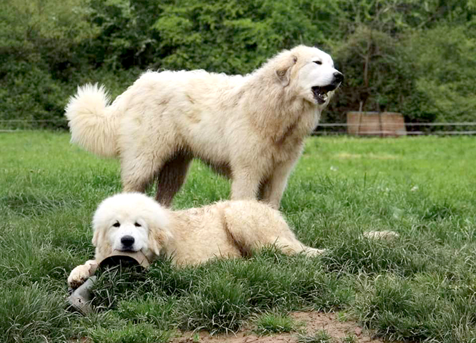 Een jonge hond kan nog geen kudde beschermen. Het leren gaat veel makkelijker als hij samenwerkt met volwassen honden. Hij heeft contact nodig met andere honden en moet regelmatig spelen om energie kwijt te raken.